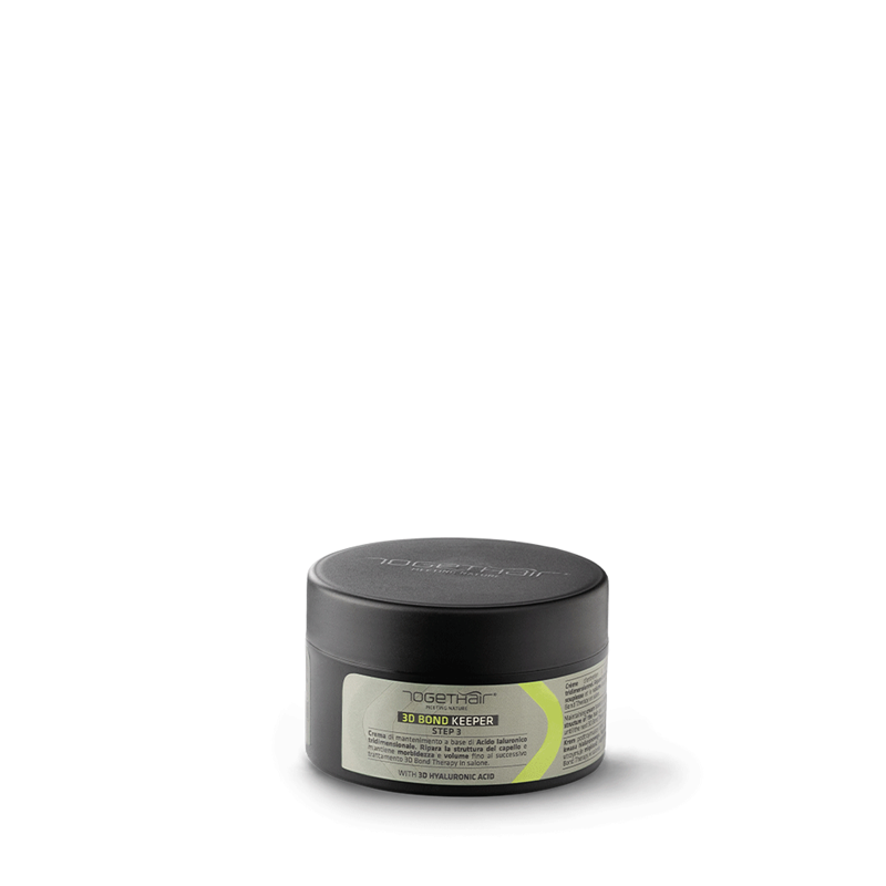Crème d'entretien à base d'acide hyaluronique tridimensionnel. Repare la structure du cheveu et preserve la souplesse et le volume jusqu'à traitement suivant avec 3D BOND THERAPY en salon.
