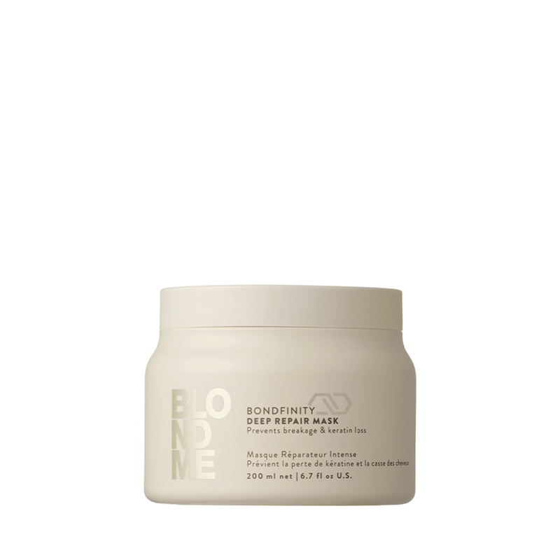 Réparant et renforçant en profondeur les cheveux blonds et éclaircis sans les alourdir, BLONDME Deep Repair Mask avec la TECHNOLOGIE BONDFINITY restaure la santé des cheveux en créant des liens capillaires résistants et en emprisonnant la kératine des cheveux - une réparation proactive et permanente pour des cheveux 20 fois plus forts après une seule utilisation*.