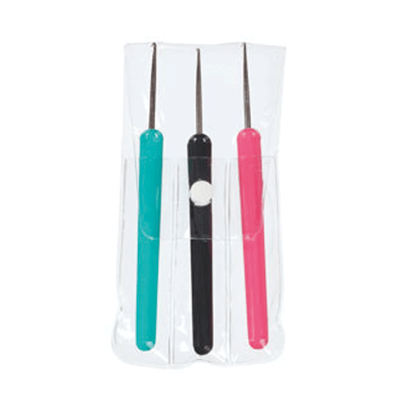 Set de 3 crochets de tailles différentes dans un étui en PVC.