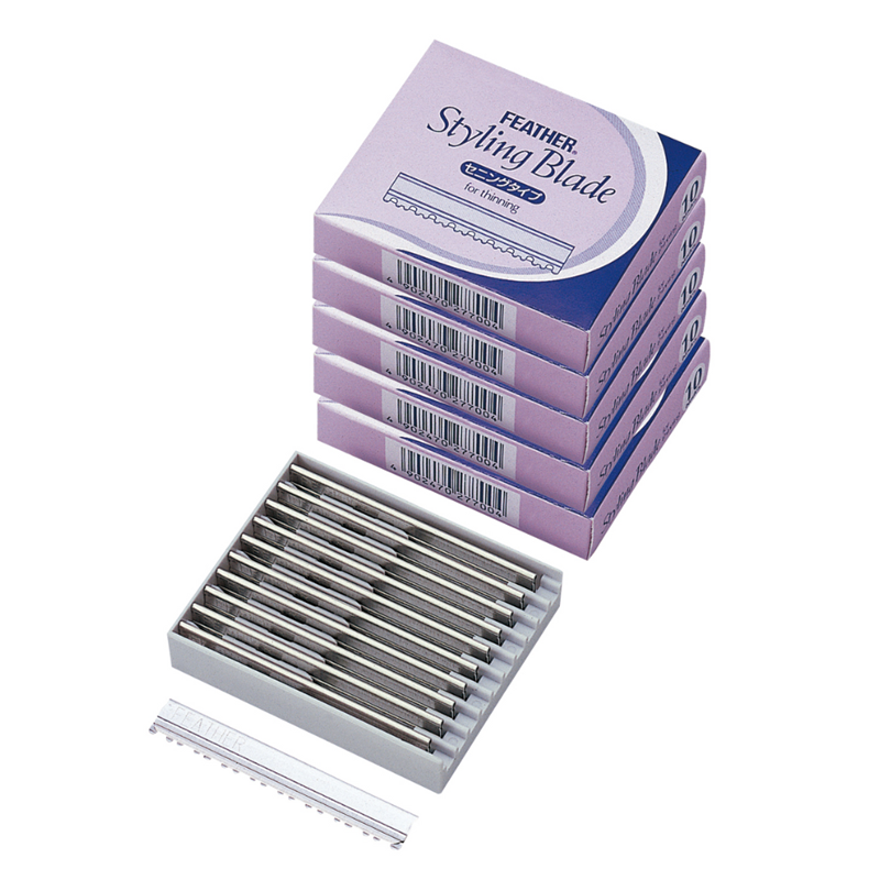 Boîte contenant 5 étuis contenant chacun 1 lames à effiler à utiliser avec le rasoir effileur Feather. Le rapport de coupe de ce type de lames est de 5 %. Elles sont donc idéales pour l'effilage.