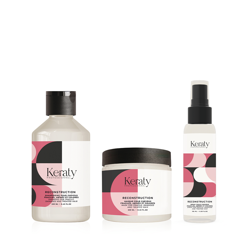 Routine Keraty Professionnel pour cheveux fragiles, abîmés et colorés.