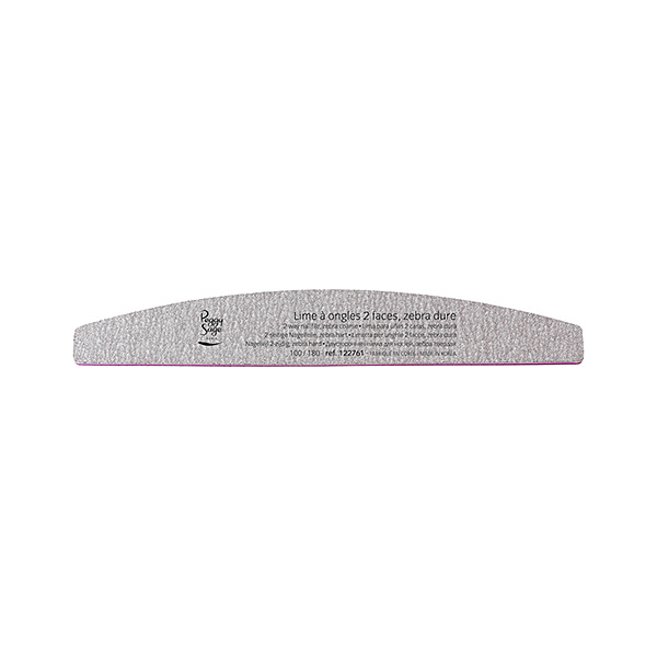 La lime à ongles 2 faces demi-lune 100/180 zebra Peggy Sage offre deux faces lavables demi-lune pour une utilisation et une prise en main facile.