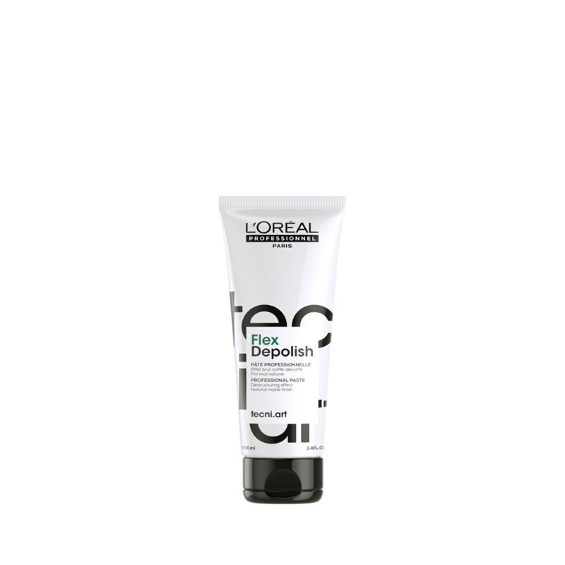 L'Oréal Professionnel Tecni.ART Flex Depolish Wax pour un contrôle ultime de la coiffure avec un fini mat. Cette cire à séchage rapide est idéale pour créer des looks bruts et ébouriffés.