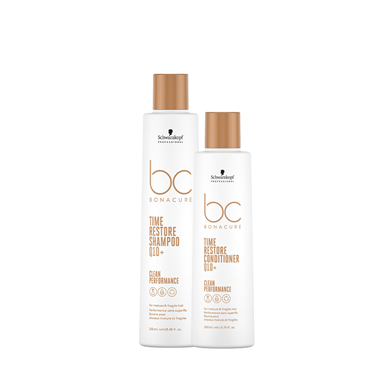 Ce nettoyant capillaire de Bonacure Time Restore, spécialement formulé avec du Q10+, nettoie en douceur et renforce les cheveux matures.
