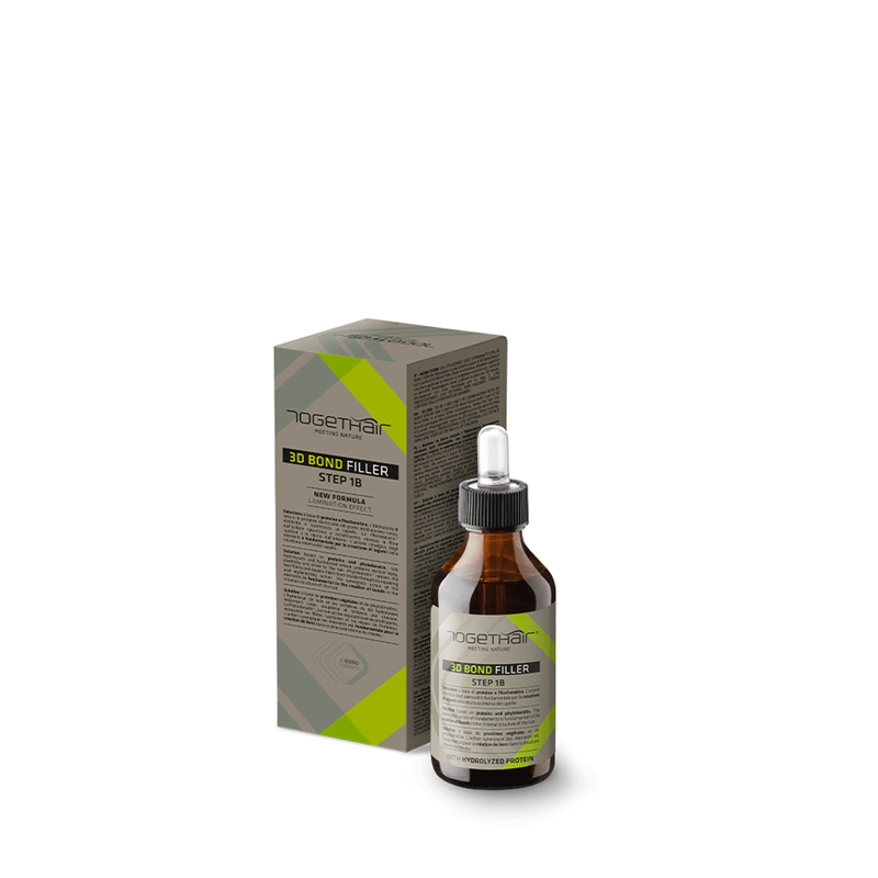 RICHTLIJNEN: alleen gebruiken in combinatie met 3D BOND SERUM. Meng in een kom 5 doses 3D BOND SERUM met één dosis 3D BOND FILLER (verhouding 5:1). Na het wassen met 3D BOND STEP 0, het haar in strengen verdelen en het mengsel met een borstel aanbrengen op de lengten en punten. Goed inmasseren. Laat 20 minuten intrekken. Spoel grondig uit. Ga verder met stap 2 (3D BOND BUILDER).