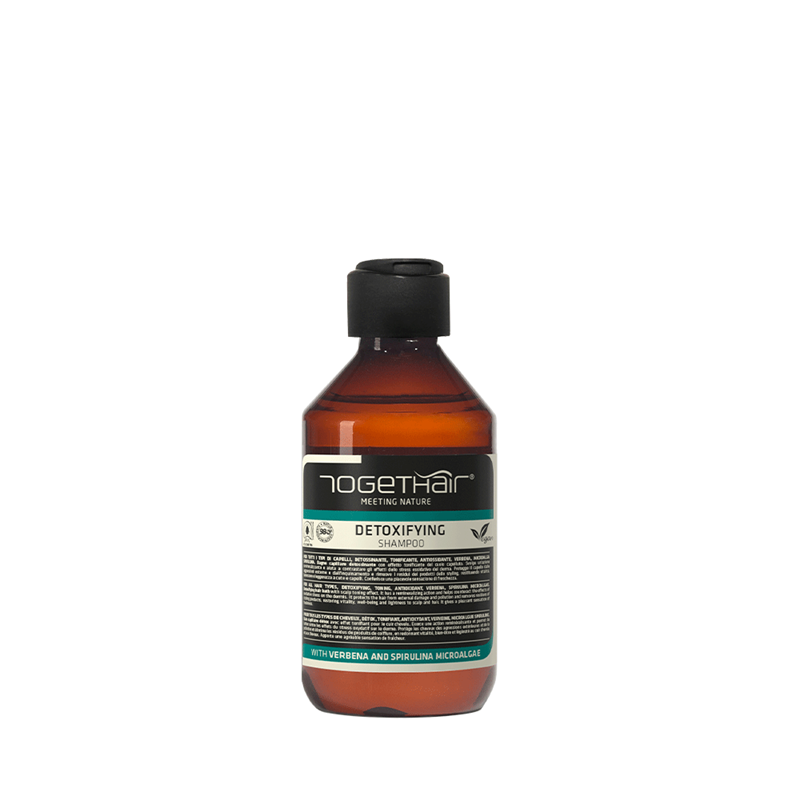 "VOOR ALLE HAARTYPES. ONTGIFTEND, TONIFIËREND, ANTIOXIDANT. IJZERKRUID, SPIRULINA MICROALGEN. Ontgiftend haarbad met een verstevigend effect op de hoofdhuid. Remineraliseert en helpt de effecten van oxidatieve stress op de dermis te bestrijden. Beschermt het haar tegen agressieve invloeden van buitenaf en vervuiling en verwijdert resten van stylingproducten, herstelt de vitaliteit, het welzijn en de lichtheid van de hoofdhuid en het haar. hoofdhuid en haar. Geeft een aangenaam gevoel van frisheid".