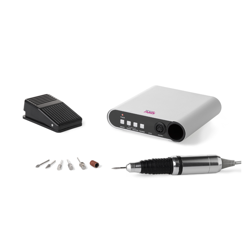 Set elektrische nagelvijlen met elektronische schakelaars voor professionele nagelstylisten. De set wordt geleverd met een stevige, betrouwbare stylus die met de hand of met een voetpedaal kan worden in- en uitgeschakeld. Met set tips, digitaal display en maximale snelheid van 28 rpm.