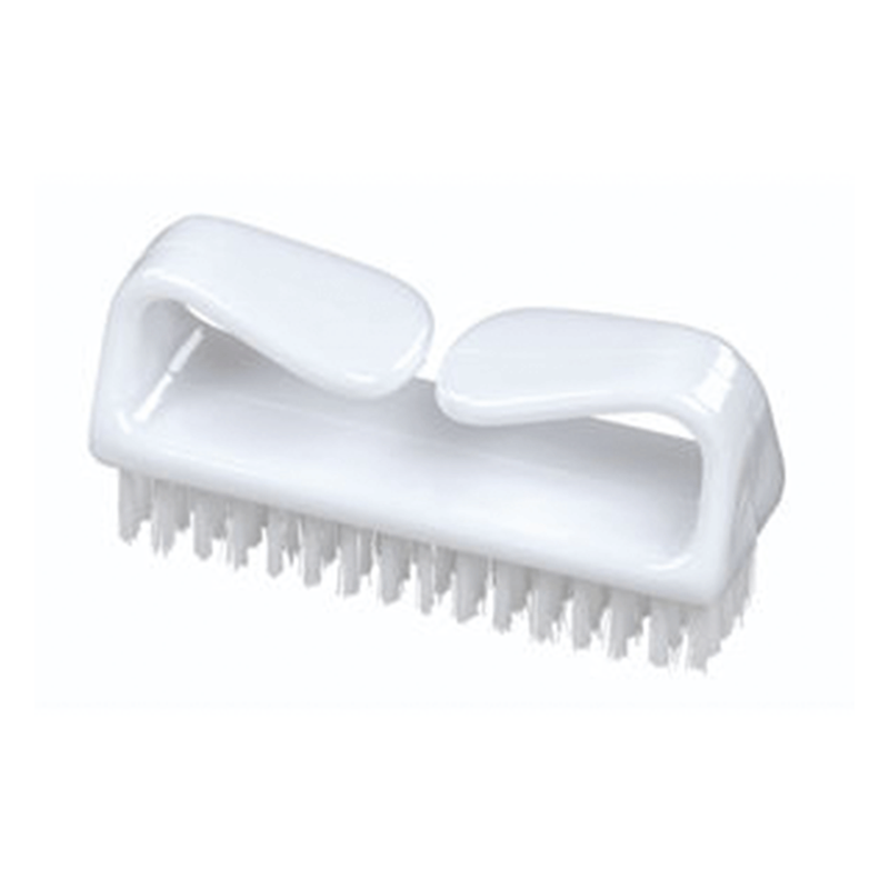 Nagelborstel met plastic handvat en harde nylon borstel.