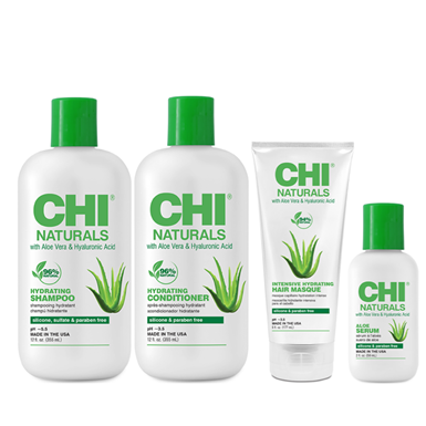 Samengesteld met Aloë Vera en Hyaluronzuur, biedt de CHI Naturals lijn een uitbarsting van hydratatie en voeding om vocht in te sluiten en glans en zachtheid aan haar en huid te verhogen. De producten in deze lijn helpen pluis en breuk te minimaliseren voor stralend, gezond uitziend haar en houden de huid glad, zacht en stralend.