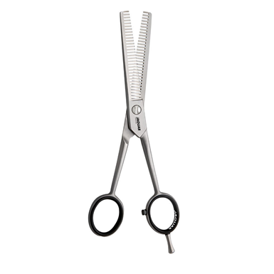 Uitgerust met speciale bladen, waarvan één gekarteld, kun je hiermee subtiel haarmassa verwijderen zonder scherpe lijnen te creëren. Deze schaar is perfect voor het uitdunnen van haar, het verzachten van contouren en het creëren van een natuurlijk gelaagdheidseffect.