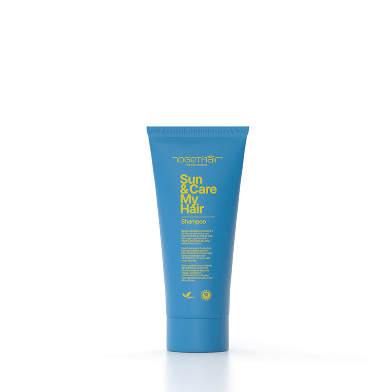 Bain capillaire après-soleil nourrissant et hydratant, enrichi en Niacinamide et Sève de Vigne, pour nettoyer en profondeur les cheveux stressés par le soleil, le sel et le chlore, en leur redonnant hydratation et corps.