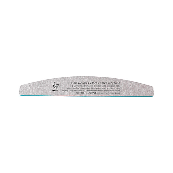 La lime à ongles 2 faces demi-lune 180/180 zebra Peggy Sage offre deux faces lavables demi-lune pour une utilisation et une prise en main facile.