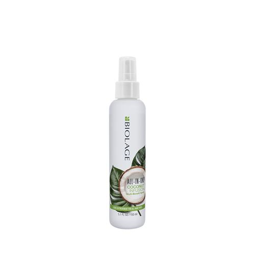 • Biolage All-In-One Multi-Benefit Spray avec infusion de noix de coco est pour tout le monde, partout, et à chaque fois.