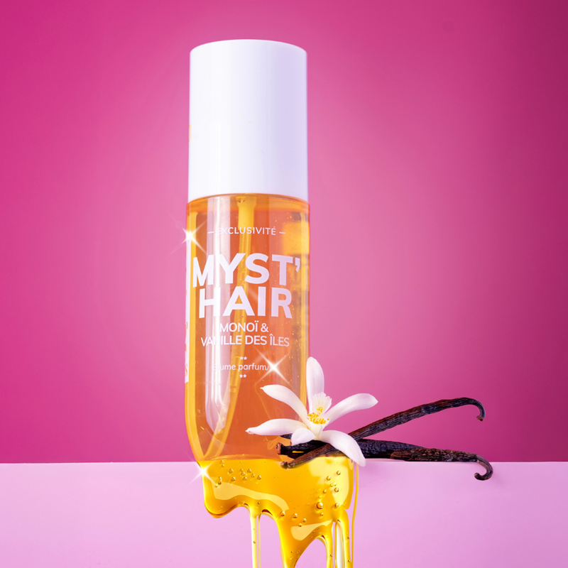 Mon super pouvoir ? Je suis là pour t’accompagner partout. Que tu sois à la maison, en ville ou en vadrouille, je sublime tes cheveux et enveloppe ta peau d’un sillage chaud et réconfortant.