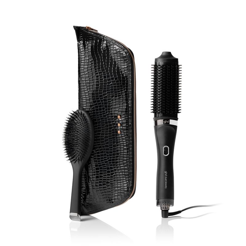 Ghd, het 5-sterren cadeau. Eis perfectie voor je haar: een professionele, langdurige styling zonder concessies te doen aan de gezondheid van je haar. Choisissez le coffret Brosse Soufflante 2-en-1 ghd Duet Blowdry, accompagnée d'une brosse de coiffage ovale et d’une pochette thermorésistante. Dit revolutionaire hulpmiddel droogt en stylet tegelijkertijd je natte haar zonder hittebeschadiging* en zonder moeite. Creëer zo de looks waar je van droomt, van butterfly-brushing tot steil of krullend haar, van bobkapsels tot curtain bangs.