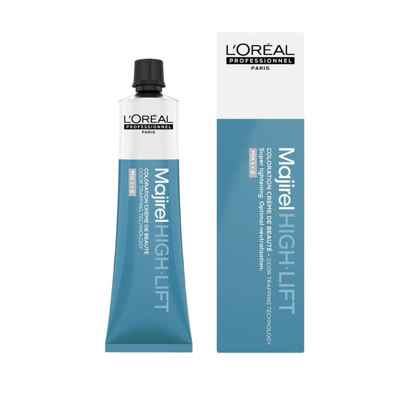 Iconische permanente haarkleuring nu met Odor Trapping Technology. Door ammoniakmoleculen in te sluiten, wordt de ammoniakgeur met twee keer* verminderd. Deze innovatieve technologie zorgt voor krachtige kleurprestaties en bevat nieuwe verzorgende bestanddelen voor gladder, meer verzorgd haar. Nieuwe gladde textuur voor beter doseren, makkelijker mengen en foutloos toepassen**. De innovatieve formule van Majirel High Lift verheldert, neutraliseert en kleurt in één stap en biedt een mooi palet aan koele blondtinten van uiterst neutraal tot ijzig platina.