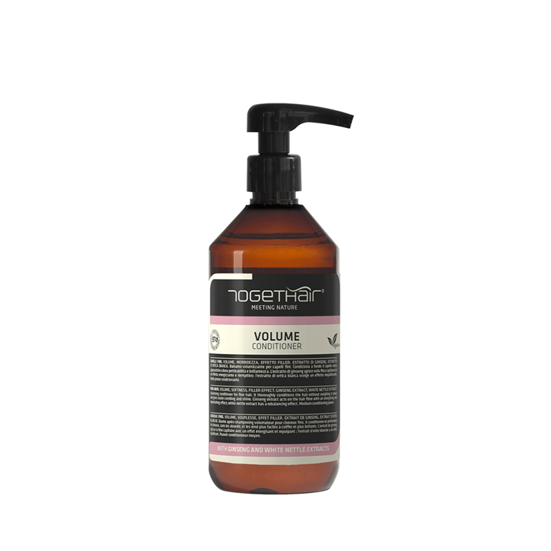 "FIJN HAAR. VOLUME, SOEPELHEID, OPVULLEND EFFECT. GINSENGEXTRACT, BRANDNETELEXTRACT BRANDNETELEXTRACT. Volumegevende conditioner voor fijn haar. Verzorgt het haar diep zonder het te verzwaren, maakt het makkelijker doorkambaar en glanzender. Ginsengextract extract werkt in op de haarvezel om het haar energie te geven en voller te maken; wit brandnetelextract heeft een balancerend effect. Medium conditionerend vermogen.